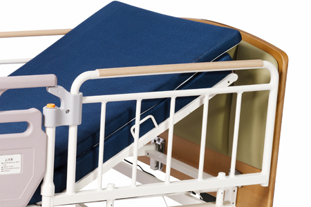 采用新型安全護(hù)欄設(shè)計,當(dāng)護(hù)欄內(nèi)部受力時無法打開,可從外部向內(nèi)部按壓打開護(hù)欄,從而有效地防止了患者從內(nèi)部誤操作,導(dǎo)致墜床事故的發(fā)生,更加安全